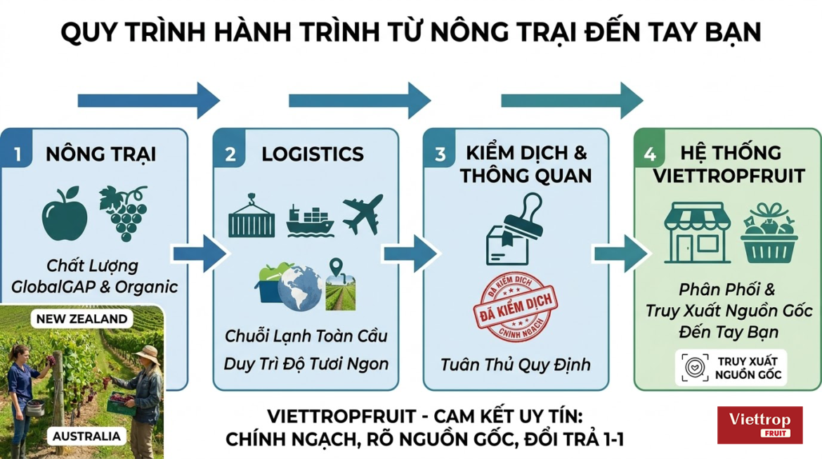 - Chất lượng tuyệt đối: 100% trái cây nhập khẩu chính ngạch từ các quốc gia hàng đầu (Mỹ, Úc, New Zealand, Hàn Quốc, Nhật Bản).